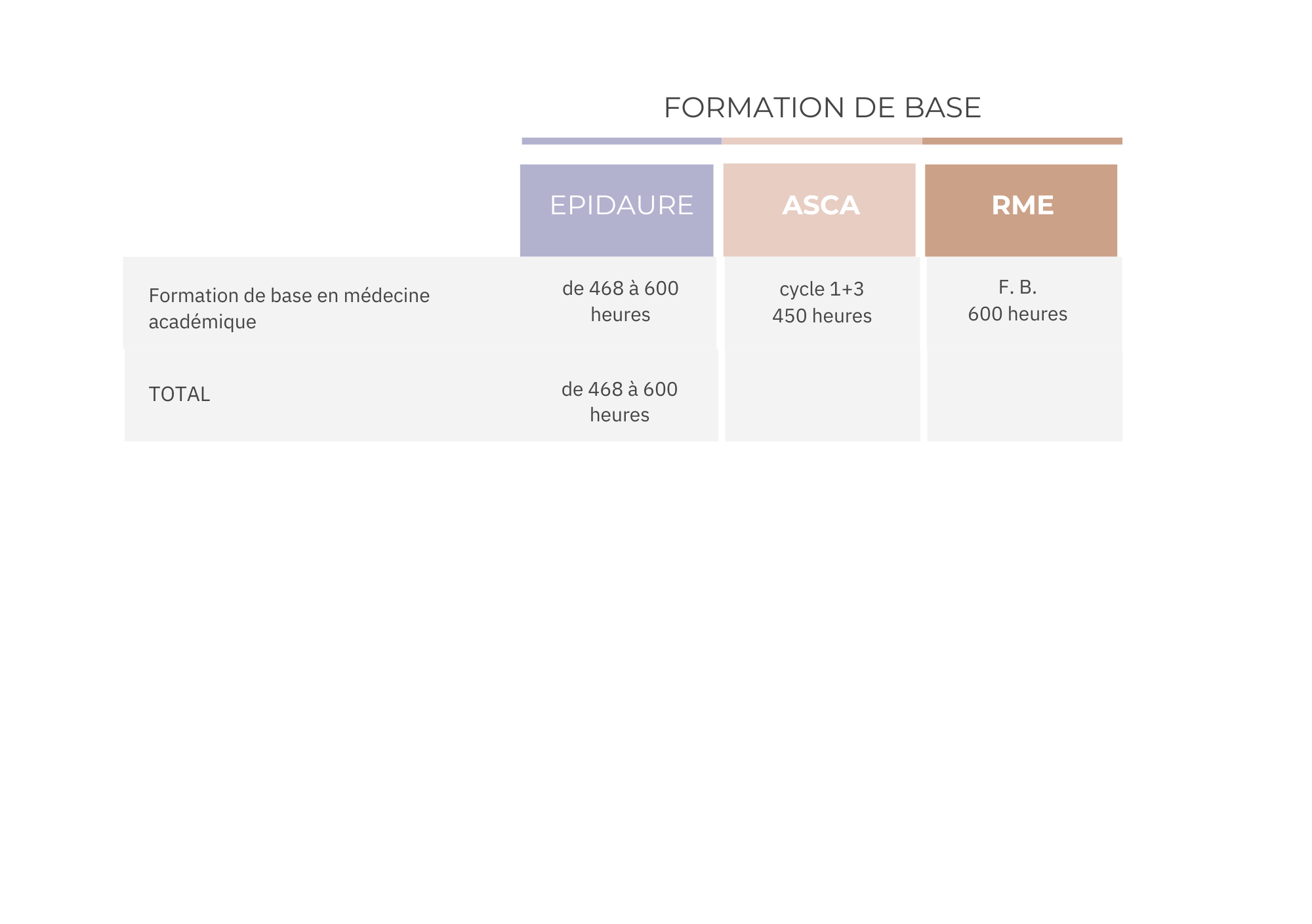 Dénomination technique: Cette formation en médecine académique correspond au ‘cycle 1+3’ de la fondation ASCA et répond aux critères de la formation de base RME.