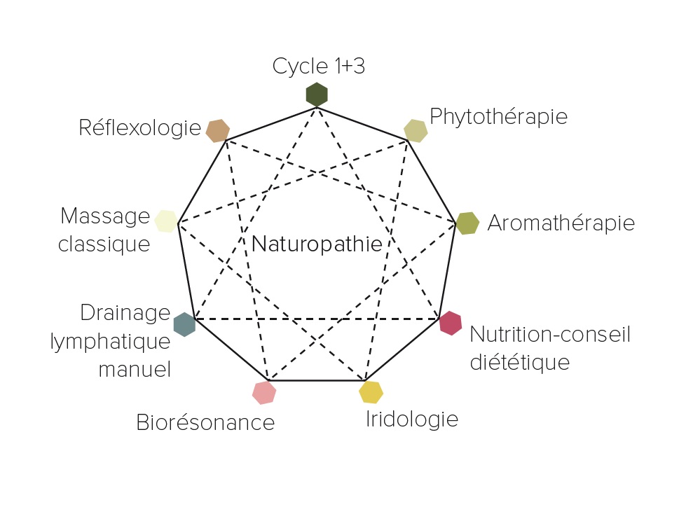 - 1’350 heures de formation en Naturopathie, articulant les méthodes obligatoires, de pratique et de bilan de santé (Cycle 2 ASCA - formation professionnelle spécifique RME)