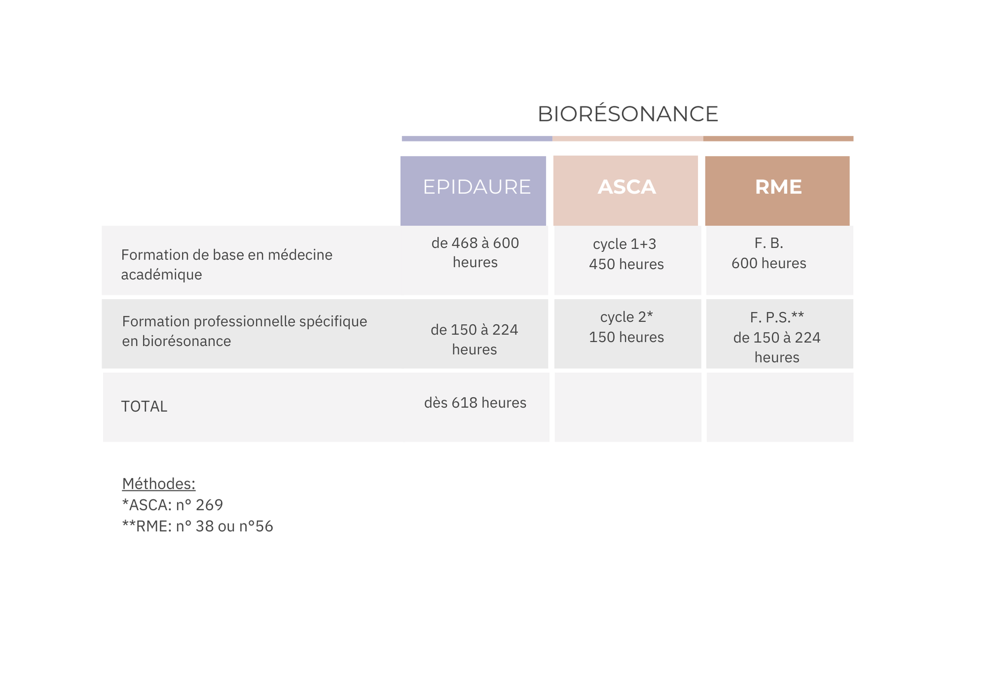 Dénomination technique: Cette formation en biorésonance (224h) correspond au ‘cycle 2’ de la fondation ASCA (méthode n° 269) et répond aux critères de la formation professionnelle spécifique du registre RME (méthode n° 38).